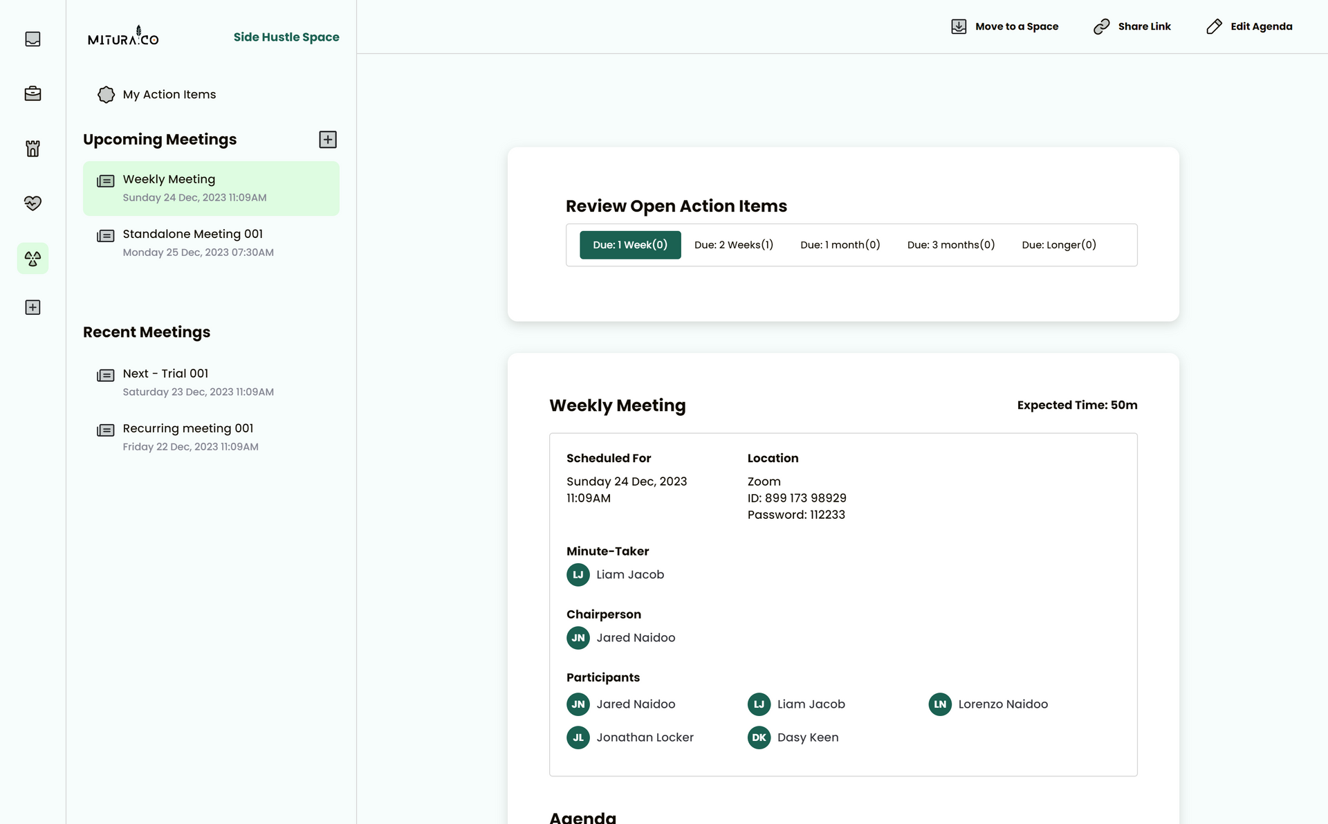 Keep everyone on the same page and make meetings more effective. Plan, organize, and streamline your meetings with a clear Agenda.